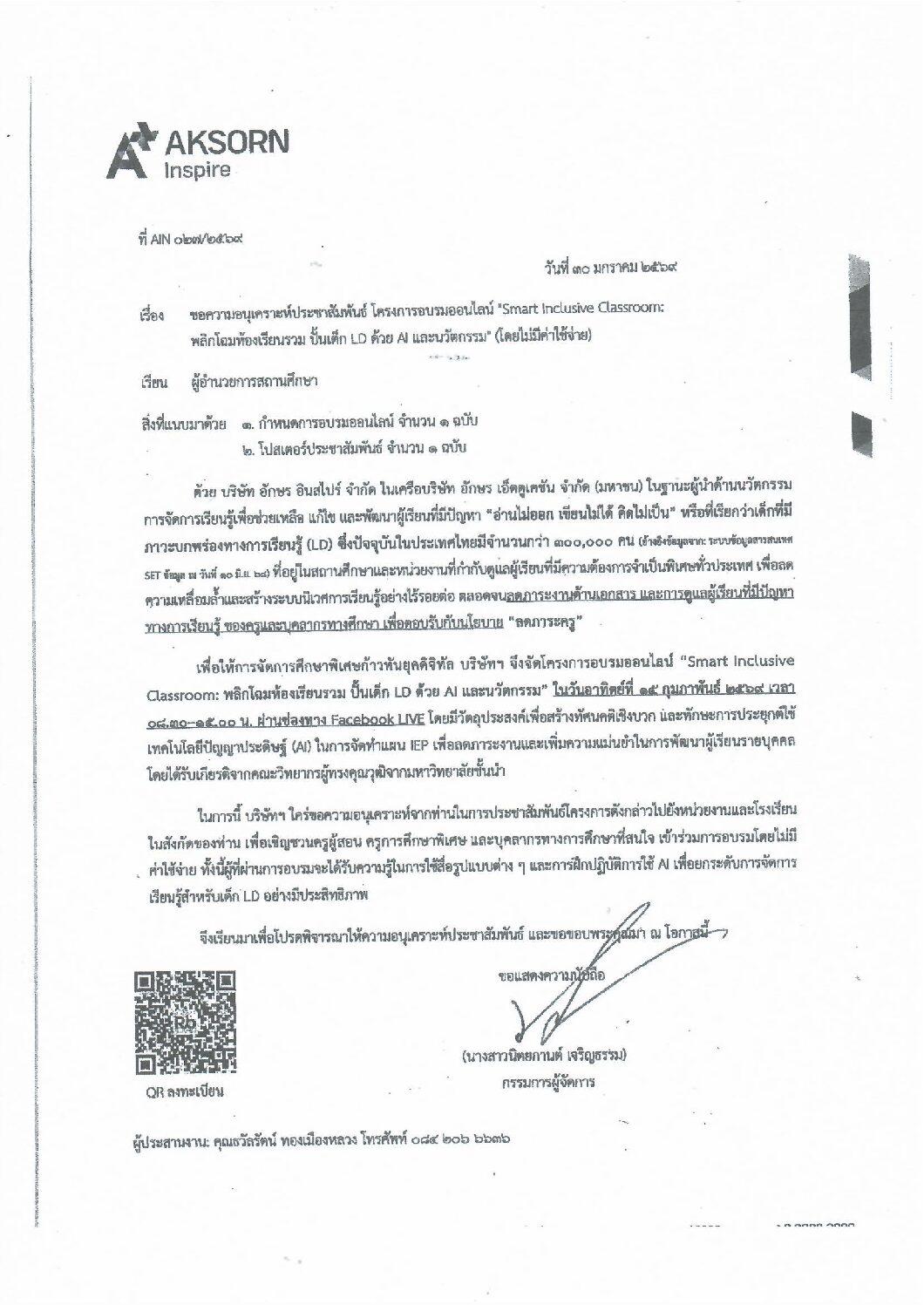 บริษัท อักษร อินสไปร์ จำกัด ในเครือบริษัท อักษร เอ็ดดูเคชัน จำกัด มหาชนในฐานะผู้นำด้านนวัตกรรมการจัดการเรียนรู้เพื่อช่วยเหลือ แก้ไข และพัฒนาผู้เรียนที่มีปัญหา อ่านไม่ออก เขียนไม่ได้ คิดไม่เป็น หรือที่เรียกว่าเด็กที่มีภาวะบกพร่องทางการเรียนรู้ ซึ่งปัจจุบันในประเทศไทยมีจำนวนกว่า 300,000 คน ที่อยู่ในสถานศึกษาและหน่วยงานที่กำกับดูแลผู้เรียนที่มีความต้องการจำเป็นพิเศษทั่วประเทศ เพื่อลดความเหลื่อมล้ำตลอดจนลดภาระงานด้านเอกสาร และการดูแลผู้เรียนที่มีปัญหาทางการเรียนรู้ ของครูและบุคลากรทางการศึกษา เพื่อตอบรับกับนโยบาย ลดภาระครู