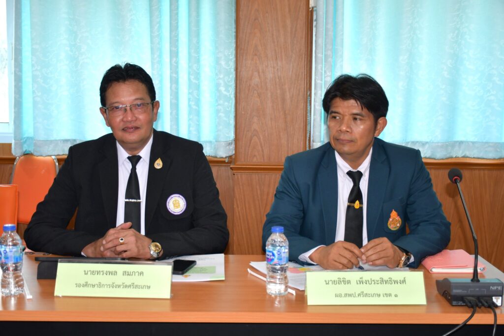 เมื่อวันที่ 19 กุมภาพันธ์ 2569 เวลา 09.00 น. ณ ห้องประชุมไพลิน อาคารศรีสัตตพัฒน์ สำนักงานเขตพื้นที่การศึกษาประถมศึกษาศรีสะเกษ เขต 1 นายเสริมฤทธิ์ หวายฤทธิ์ธนกุล ผู้ตรวจราชการกระทรวงศึกษาธิการ พร้อมด้วย นายสมาน เวียงปฏิ ศึกษาธิการจังหวัดศรีสะเกษ และคณะ ได้ลงพื้นที่ เพื่อติดตามประเมินผลตามนโยบายการตรวจราชการของกระทรวงศึกษาธิการ กรณีปกติ รอบที่ 1 ประจำปีงบประมาณ พ.ศ. 2569 เขตตรวจราชการที่ 14 เพื่อรับทราบผลการบริหารจัดการและการจัดการเรียนการสอน ตามนโยบายของกระทรวง ศึกษาธิการ “เรียนดี มีความสุข” โดยมี นายลิขิต เพ็งประสิทธิพงศ์ ผู้อำนวยการสำนักงานเขตพื้นที่การศึกษาประถมศึกษาศรีสะเกษ เขต 1 พร้อมด้วย ดร.พีระพรรณ ทองศูนย์ นางสาวธรรศญา หล่าอุดม นายชาณุวัติ ศรเพชร รองผู้อำนวยการสำนักงานเขตพื้นที่การศึกษาประถมศึกษาศรีสะเกษ เขต 1 ผู้อำนวยการกลุ่ม เจ้าหน้าที่ที่เกี่ยวข้อง ให้การต้อนรับ พร้อมนำเสนอผลการปฏิบัติงานตามนโยบายกระทรวงศึกษาธิการ////// ปาริชาติ อาจสำแดง ภาพ / ข่าว