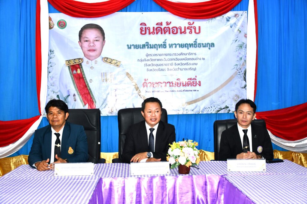 เมื่อวันที่ 19 กุมภาพันธ์ 2569 เวลา 10.30 น. นายเสริมฤทธิ์ หวายฤทธิ์ธนกุล ผู้ตรวจราชการกระทรวง ศึกษาธิการ พร้อมด้วย นายสมาน เวียงปฏิ ศึกษาธิการจังหวัดศรีสะเกษ นายลิขิต เพ็งประสิทธิพงศ์ ผู้อำนวยการสำนักงานเขตพื้นที่การศึกษาประถมศึกษาศรีสะเกษ เขต 1 และคณะ ได้เดินทางไปที่โรงเรียนบ้านหนองดุมหนองม่วง ตำบลหนองหัวช้าง อำเภอกันทรารมย์ จังหวัดศรีสะเกษ เพื่อติดตามประเมินผลตามนโยบายการตรวจราชการของรัฐมนตรีว่าการกระทรวงศึกษาธิการ กรณีปกติ รอบที่ 1 ประจำปีงบประมาณ พ.ศ. 2569 เขตตรวจราชการที่ 14 เพื่อรับทราบผลการบริหารจัดการและการจัดการเรียนการสอน ตามนโยบายของรัฐมนตรีว่าการกระทรวง ศึกษาธิการ “เรียนดี มีความสุข” โดยมี นางสาวธรรศญา หล่าอุดม นายชาณุวัติ ศรเพชร รองผู้อำนวยการสำนักงานเขตพื้นที่การศึกษาประถมศึกษาศรีสะเกษ เขต 1 พร้อมด้วย นางราชมาลี ต้อนรับ ผู้อำนวยการศูนย์การศึกษาพิเศษ ประจำจังหวัดศรีสะเกษ นายสมสมัย นาราษฎร์ ผู้อำนวยการโรงเรียนบ้านลือชัยโนนศรีไคลร่องน้ำคำ ประธานกลุ่มเครือข่ายพัฒนาคุณภาพการศึกษาแบบบูรณาการกลางกันทรารมย์ นายทัพพ์เทพ พิทักษ์ไหมทอง ผู้อำนวยการโรงเรียนบ้านหนองดุมหนองม่วง พร้อมด้วย ผู้บริหารสถานศึกษา ศึกษานิเทศก์ คณะกรรมการสถานศึกษาขั้นพื้นฐาน ข้าราชการครูและบุคลากรทางการศึกษา ให้การต้อนรับ พร้อมนำเสนอผลการปฏิบัติงานตามนโยบายรัฐมนตรีว่าการกระทรวงศึกษาธิการ และนำเยี่ยมชมนิทรรศการแสดงผลงานด้านวิชาของโรงเรียนในกลุ่มเครือข่ายตำบลหนองหัวช้าง///// ปาริชาติ อาจสำแดง////// ภาพ / ข่าว