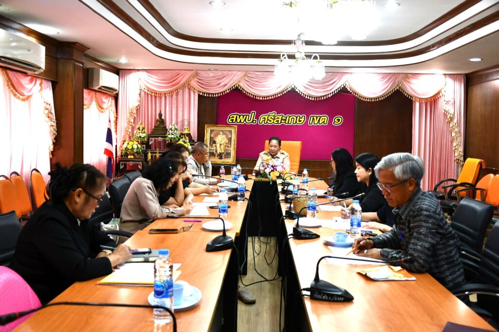 เมื่อวันที่ 23 กุมภาพันธ์ 2569 เวลา 09.00 น. ณ ห้องประชุมพลอยชมพู อาคารศรีสัตตพัฒน์ สำนักงานเขตพื้นที่การศึกษาประถมศึกษาศรีสะเกษ เขต 1 นายลิขิต เพ็งประสิทธิพงศ์ ผู้อำนวยการสำนักงานเขตพื้นที่การศึกษาประถมศึกษาศรีสะเกษ เขต 1 มอบหมายให้ นางสาวพีระพรรณ ทองศูนย์ รองผู้อำนวยการสำนักงานเขตพื้นที่การศึกษาประถมศึกษาศรีสะเกษ เขต 1 เป็นประธานการประชุม เพื่อพิจารณาจัดสรรงบประมาณรายจ่าย ประจำปีงบประมาณ พ.ศ. 2569 ครั้งที่ 2 สำหรับเป็นค่าใช้จ่ายในการดำเนินงานของสำนักงาน ค่าสาธารณูปโภค ค่าใช้จ่ายในการบริหารจัดการโรงเรียนในสังกัด ค่าใช้จ่ายในการส่งเสริมการจัดการศึกษา การนิเทศ ติดตาม และประเมินผลการจัดการศึกษา ค่าใช้จ่ายในการพัฒนาคุณภาพการศึกษาตามบริบทของพื้นที่ โดยมี ผู้อำนวยการกลุ่ม/หน่วย และบุคลากรกลุ่มนโยบายและแผน เข้าร่วมประชุมในครั้งนี้//// ปาริชาติ อาจสำแดง ภาพ / ข่าว