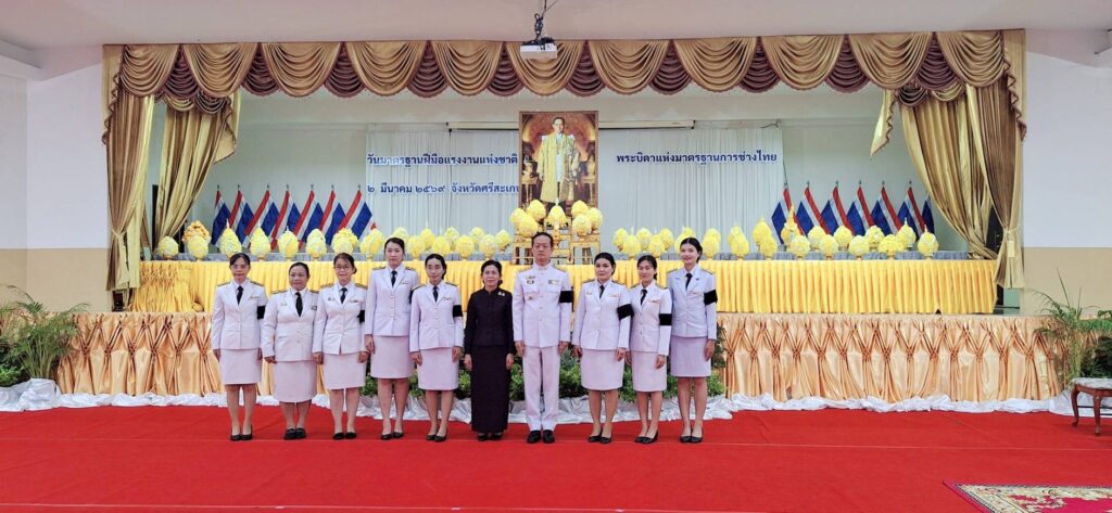 เมื่อวันที่ 2 มีนาคม 2569 เวลา 09.00 น. ณ หอประชุมเฉลิมพระเกียรติครองราชย์ 60 ปี โรงเรียนราชประชานุเคราะห์ 29 จังหวัดศรีสะเกษ อำเภอเมือง จังหวัดศรีสะเกษ นายลิขิต เพ็งประสิทธิพงศ์ ผู้อำนวยการสำนักงานเขตพื้นที่การศึกษาประถมศึกษาศรีสะเกษ เขต 1 มอบหมายให้ บุคลากรกลุ่มอำนวยการ เข้าร่วมพิธีถวายราชสักการะ เนื่องใน “วันมาตรฐานฝีมือแรงงานแห่งชาติ” ประจำปี 2569 เพื่อน้อมรำลึกในพระมหากรุณาธิคุณของพระบาทสมเด็จพระบรมชนกาธิเบศร มหาภูมิพลอดุลยเดชมหาราช บรมนาถบพิตร ผู้ทรงได้รับการถวายพระราชสมัญญาเป็น “พระบิดาแห่งมาตรฐานการช่างไทย” โดยมี นายอนุรัตน์ ธรรมประจำจิต ผู้ว่าราชการจังหวัดศรีสะเกษ เป็นประธานในพิธี ซึ่งมี หัวหน้าส่วนราชการ ตุลาการ อัยการ ทหาร ตำรวจ เหล่ากาชาดจังหวัดศรีสะเกษ หน่วยงานภาครัฐ ภาคเอกชน และผู้ที่เกี่ยวข้อง เขาร่วมพิธีในครั้งนี้/////