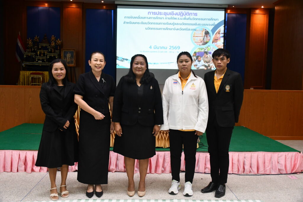 เมื่อวันที่ 4 มีนาคม 2569 เวลา 09.00 น. ณ ห้องประชุมเพชร สำนักงานเขตพื้นที่การศึกษาประถมศึกษาศรีสะเกษ เขต 1 นายลิขิต เพ็งประสิทธิพงศ์ ผู้อำนวยการสำนักงานเขตพื้นที่การศึกษาประถมศึกษาศรีสะเกษ เขต 1 มอบหมายให้ ดร.พีระพรรณ ทองศูนย์ รองผู้อำนวยการสำนักงานเขตพื้นที่การศึกษาประถมศึกษาศรีสะเกษ เขต 1 รักษาราชการแทน ผู้อำนวยการสำนักงานเขตพื้นที่การศึกษาประถมศึกษาศรีสะเกษ เขต 1 เป็นประธานการประชุมเชิงปฏิบัติการการขับเคลื่อนทางการศึกษา ภายใต้ พ.ร.บ.พื้นที่นวัตกรรมการศึกษา สำหรับยกระดับนวัตกรรมการเรียนรู้และนวัตกรรมเชิงระบบของพื้นที่นวัตกรรมการศึกษาจังหวัดศรีสะเกษ โดยมีวัตถุประสงค์เพื่อร่วมแลกเปลี่ยนเรียนรู้จากครูต้นแบบที่เข้าร่วมโครงการฯ เพื่อพัฒนาศักยภาพครูในการออกแบบหน่วยการเรียนรู้ฯ เพื่อสร้างกลไกการขับเคลื่อนเชิงวิชาการในระดับต้นสังกัดร่วมกันระหว่างโรงเรียนและต้นสังกัด ผู้เข้าร่วมกิจกรรมเป็นผู้บริหารสถานศึกษา ครูและบุคลากรทางการศึกษา จาก 12 โรงเรียน ในโครงการฯ และโรงเรียนในสังกัดที่สนใจ จำนวน 100 คน โดยมี นางดวงหทัย อุ่นใจ ศึกษานิเทศก์ชำนาญการพิเศษ เป็นผู้รับผิดชอบโครงการ และมี คณะศึกษานิเทศก์ ให้การต้อนรับ และร่วมพิธีเปิดในครั้งนี้///// ปาริชาติ อาจสำแดง ภาพ / ข่าว