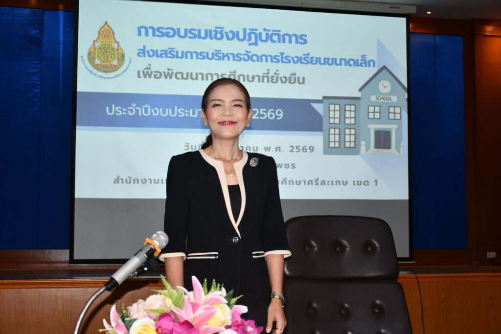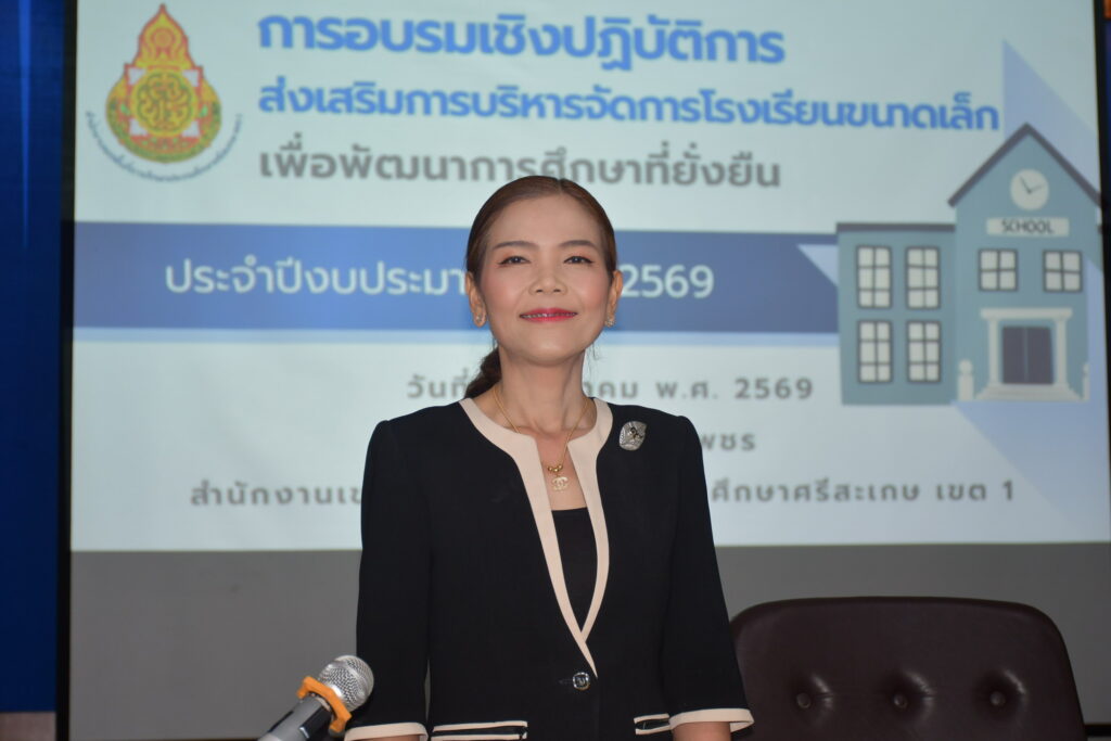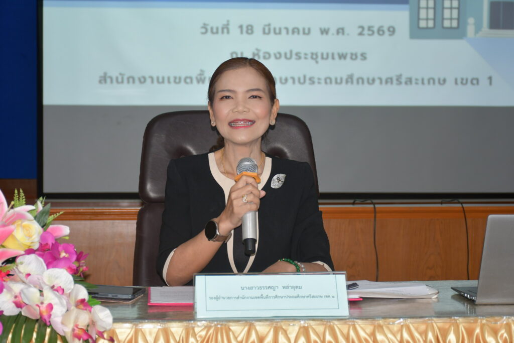 เมื่อวันที่ 18 มีนาคม 2569 เวลา 09.00 น. ณ ห้องประชุมเพชร สำนักงานเขตพื้นที่การศึกษาประถมศึกษาศรีสะเกษ เขต 1 นายลิขิต เพ็งประสิทธิพงศ์ ผู้อำนวยการสำนักงานเขตพื้นที่การศึกษาประถมศึกษาศรีสะเกษ เขต 1 ได้ให้โอวาท พร้อมทั้งมอบนโยบาย ผ่านระบบออนไลน์ ให้กับผู้เข้ารับการอบรมเชิงปฏิบัติการส่งเสริมการจัดการเรียนรู้และการบริหารจัดการวิธีปฏิบัติที่เป็นเลิศ (Best Practice) เพื่อพัฒนาการศึกษาที่ยั่งยืนสำหรับโรงเรียนขนาดเล็ก โดยมี นางสาวธรรศญา หล่าอุดม รองผู้อำนวยการสำนักงานเขตพื้นที่การศึกษาประถมศึกษาศรีสะเกษ เขต 1 เป็นประธานเปิดการอบรม และบรรยายพิเศษ โดยมีวัตถุประสงค์เพื่อหารูปแบบการบริหารจัดการเรียนรู้ที่เหมาะสมสำหรับโรงเรียนขนาดเล็ก เพื่อเสริมสร้างทักษะการบริหารจัดการและการใช้ทรัพยากรอย่างคุ้มค่า เพื่อสร้างเครือข่ายความร่วมมือระหว่างโรงเรียนขนาดเล็กในการพัฒนาคุณภาพการศึกษา ซึ่งมี ผู้บริหารสถานศึกษา และครูวิชาการ จากโรงเรียนขนาดเล็กทุกโรงเรียน จำนวน 174 โรงเรียน เข้ารับการอบรม โดยมี นายทองคำ จันทร์โสภา ผู้อำนวยการกลุ่มนิเทศ ติดตาม และประเมินผลการจัดการศึกษา เป็นผู้กล่าวรายงาน มี นายชาณุวัติ ศรเพชร รองผู้อำนวยการสำนักงานเขตพื้นที่การศึกษาประถมศึกษาศรีสะเกษ เขต 1 บรรยายพิเศษ และมี ศึกษานิเทศก์ พร้อมด้วย บุคลากรกลุ่มนโยบายและแผน ให้การต้อนรับ และร่วมพิธีเปิดในครั้งนี้ ซึ่งก่อนการประชุม ได้ร่วมกิจกรรมเขตสุจริต ร้องเพลงชาติ สวดมนต์ไหว้พระ ร้องเพลงสดุดีจอมราชา กล่าวคำปฏิญญาเขตสุจริต พิธียืนสงบนิ่งถวายความอาลัยแด่สมเด็จพระนางเจ้าสิริกิติ์ พระบรมราชินีนาถ พระบรมราชชนนีพันปีหลวง เป็นเวลา 93 วินาที