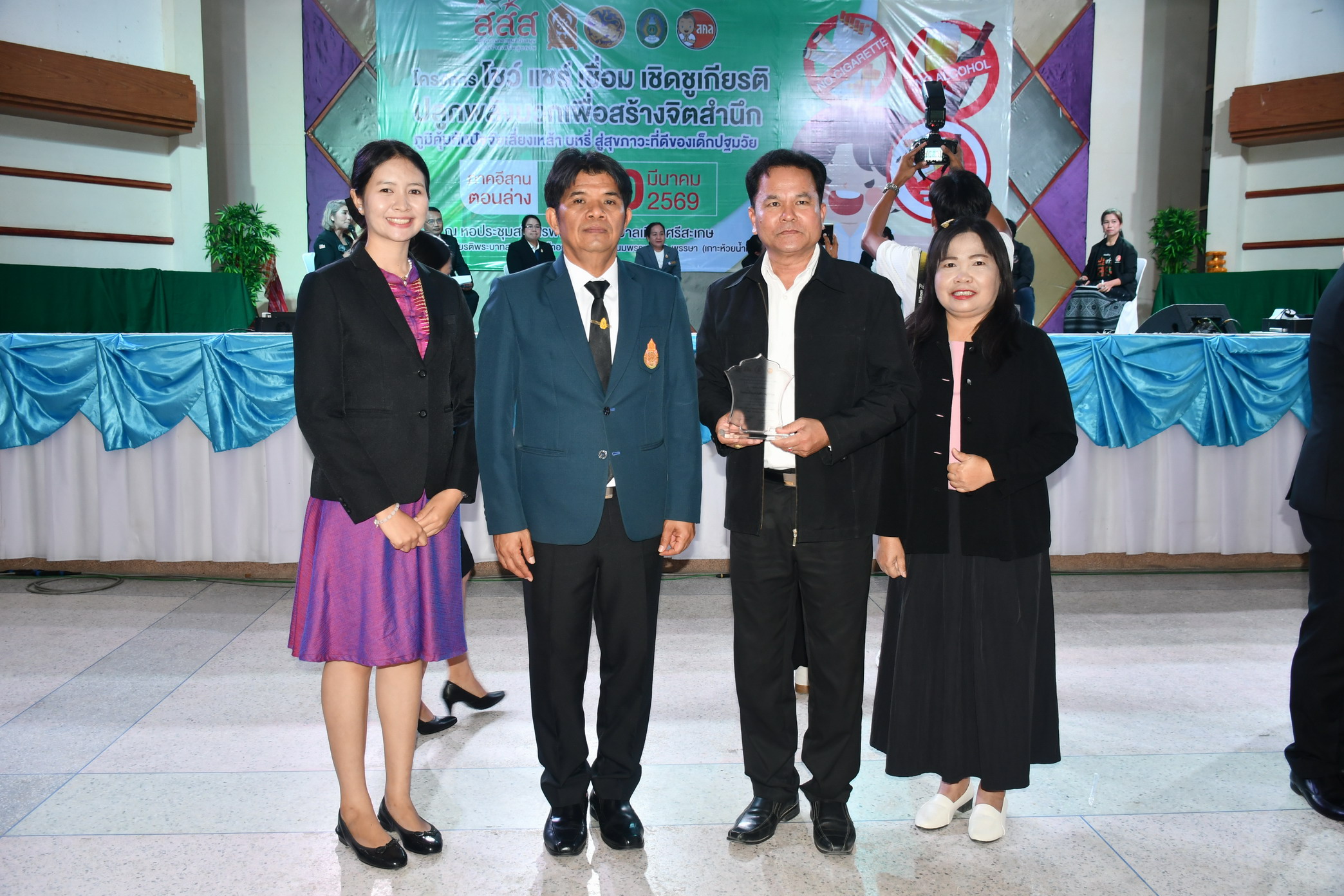 | เมื่อวันที่ 10 มีนาคม 2569 เวลา 09.00 น. ณ หอประชุมสโมสรพนักงานเทศบาลเมืองศรีสะเกษ สวนเฉลิมพระเกียรติพระบาทสมเด็จพระเจ้าอยู่หัวเฉลิมพระชนมพรรษา 80 พรรษา (เกาะห้วยน้ำคำ) อำเภอเมือง จังหวัดศรีสะเกษ นายลิขิต เพ็งประสิทธิพงศ์ ผู้อำนวยการสำนักงานเขตพื้นที่การศึกษาประถมศึกษาศรีสะเกษ เขต 1 ร่วมเป็นเกียรติ พร้อมรับเกียรติบัตร รางวัลเชิดชูเกียรติ ในพิธีเปิดเวทีแลกเปลี่ยนเรียนรู้ โชว์ แชร์ เชื่อม เชิดชูเกียรติให้กับสถานศึกษาต้นแบบ และแหล่งเรียนรู้ที่เข้าร่วมโครงการปลูกพลังบวก เพื่อสร้างจิตสำนึกภูมิคุ้มกันปัจจัยเสี่ยง (เหล้า บุหรี่) สู่สุขภาวะที่ดีของเด็กปฐมวัย ประจำปี 2568 โดยมี นายเสริมฤทธิ์ หวายฤทธิ์ธนกูล ผู้ตรวจราชการกระทรวงศึกษาธิการ เป็นประธานในพิธี ในการนี้ ได้รับเกียรติจาก ดร.สิริพงศ์ อังคสกุลเกียรติ สมาชิกสภาผู้แทนราษฎรจังหวัดศรีสะเกษ เขต 1 ปาฐกถาเกี่ยวกับการพัฒนาเด็กปฐมวัยในจังหวัดศรีสะเกษ ซึ่งการจัดงานในครั้งนี้ เพื่อให้บุคลากรที่เกี่ยวข้องได้มีการแลกเปลี่ยนเรียนรู้วิธีปฏิบัติที่ดีเกี่ยวกับการดำเนินงานโครงการปลูกพลังบวกฯ ภายใต้สโลแกน “โชว์ แชร์ เชื่อม เชิดชูเกียรติ” โดยจัดกิจกรรมให้ผู้บริหารสถานศึกษา และครูปฐมวัยได้แสดงความคิดเห็นที่มีต่อการดำเนินงานโครงการปลูกพลังบวกฯ รวมทั้งมีการแลกเปลี่ยนเรียนรู้วิธีปฏิบัติที่ดี และมีการจัดนิทรรศการของสถานศึกษาที่เข้าร่วมโครงการ จำนวน 18 บูธกิจกรรม จากจังหวัดบุรีรัมย์ จังหวัดสุรินทร์ จังหวัดยโสธร และจังหวัดศรีสะเกษ///// ปาริชาติ อาจสำแดง ภาพ / ข่าว ![]() ![]() ![]() ![]() ![]() ![]() ![]() ![]() ![]() ![]() ![]() ![]() ![]() ![]() ![]() ![]() ![]() ![]() นำเสนอเมื่อ 11 มี.ค.69 โดย: ปาริชาติ อาจสำแดง อ่านแล้ว: 24 ครั้ง