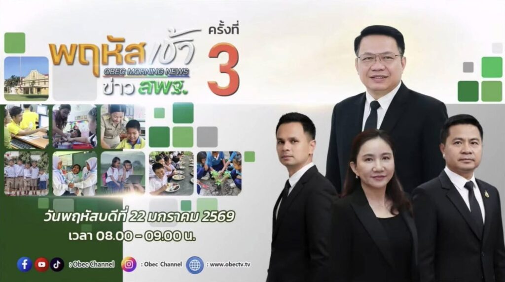 | เมื่อวันที่ 22 มกราคม 2569 เวลา 08.00 น. ณ ห้องประชุมมรกต สำนักงานเขตพื้นที่การศึกษาประถมศึกษาศรีสะเกษ เขต 1 นางสาวพีระพรรณ ทองศูนย์ รองผู้อำนวยการสำนักงานเขตพื้นที่การศึกษาประถมศึกษาศรีสะเกษ เขต 1 พร้อมด้วย นางวราภรณ์ ทองสุข ผู้อำนวยการกลุ่มอำนวยการ และบุคลากรกลุ่มอำนวยการ ร่วมรับชมรายการ “พฤหัสเช้า ข่าว สพฐ.” ครั้งที่ 3/2569 ผ่านระบบ Video Conference ซึ่งสำนักงานคณะกรรมการการศึกษาขั้นพื้นฐาน จัดขึ้น เพื่อรับทราบนโยบาย แนวทาง และข้อราชกการสำคัญจากสำนักงานคณะกรรมการการศึกษาขั้นพื้นฐาน ให้เป็นไปในแนวทางเดียวกัน เป็นการเสริมสร้างประสิทธิภาพในการบริหารจัดการศึกษา และการนำข้อมูลไปปรับใช้ในการปฏิบัติงานให้เกิดประโยชน์สูงสุดต่อสถานศึกษา ครู และนักเรียนในสังกัด////// ปาริชาติ อาจสำแดง ภาพ / ข่าว ![]() ![]() ![]() ![]() ![]() ![]() ![]() ![]() ![]() ![]() ![]() นำเสนอเมื่อ 22 ม.ค.69 โดย: ปาริชาติ อาจสำแดง อ่านแล้ว: 15 ครั้ง