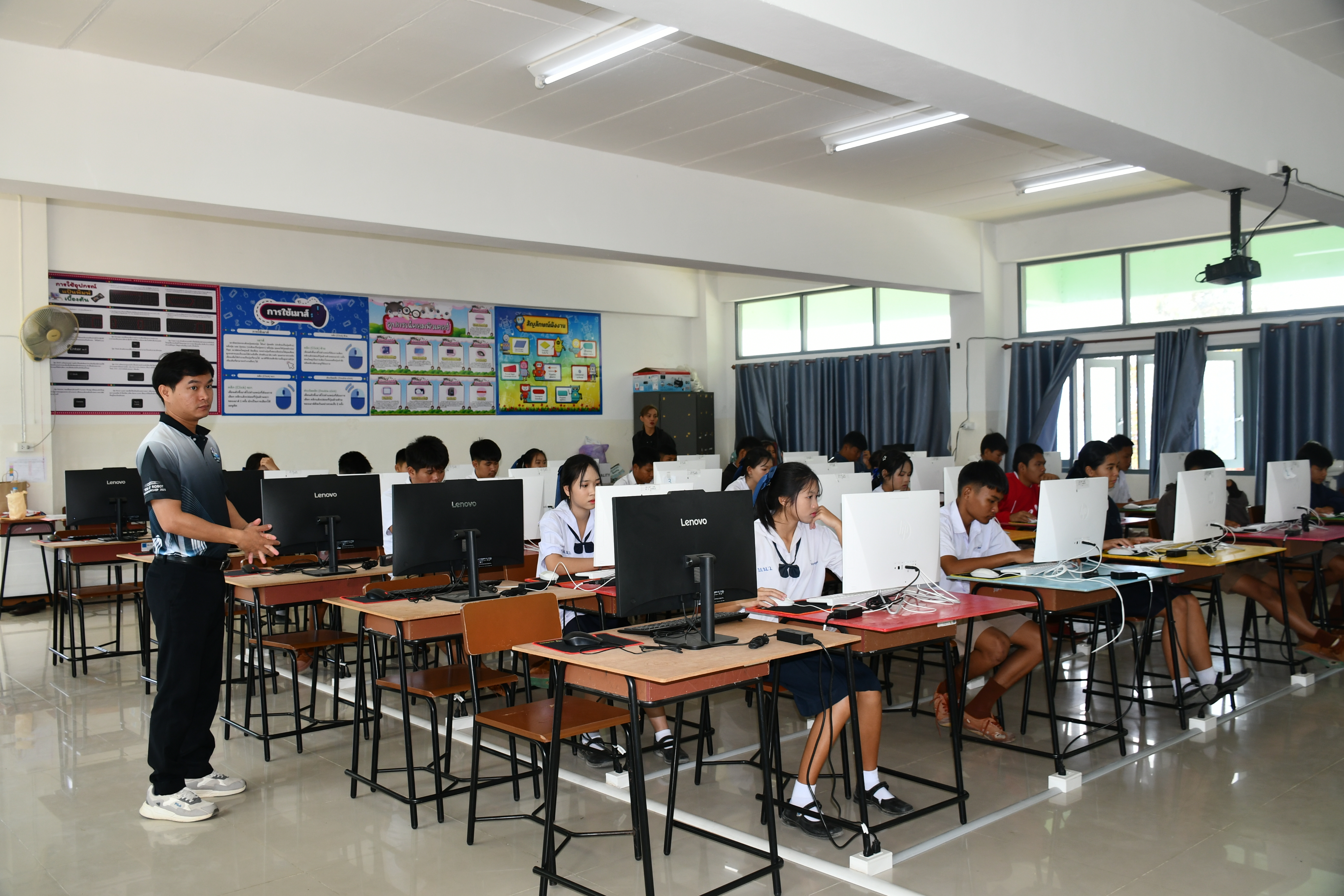 | เมื่อวันที่ 3 กุมภาพันธ์ 2569 เวลา 10.30 น. ณ สนามสอบโรงเรียนอนุบาลกันทรารมย์ อำเภอกันทรารมย์ จังหวัดศรีสะเกษ นายลิขิต เพ็งประสิทธิพงศ์ ผู้อำนวยการสำนักงานเขตพื้นที่การศึกษาประถมศึกษาศรีสะเกษ เขต 1 ได้เดินทางไปตรวจเยี่ยมและให้กำลังใจคณะกรรมการประจำสนามสอบ ครูผู้คุมสอบ และนักเรียน ในการทดสอบทางการศึกษาระดับชาติขั้นพื้นฐาน (O-NET)) ปีการศึกษา 2568 ชั้นมัธยมศึกษาปีที่ 3 ด้วยระบบดิจิทัล (Digital Testing) เพื่อให้การดำเนินการจัดสอบเป็นไปด้วยความเรียบร้อย โปร่งใส ยุติธรรม มีประสิทธิภาพ บรรลุวัตถุประสงค์ และได้มาตรฐานตามที่สถาบันทดสอบทางการศึกษาแห่งชาติ (สทศ.) กำหนด โดยมี นายชัยณรงค์ อดทน ผู้อำนวยการโรงเรียนอนุบาลกันทรารมย์ และคณะ ให้การต้อนรับ///// ปาริชาติ อาจสำแดง ภาพ / ข่าว ![]() ![]() ![]() ![]() ![]() ![]() ![]() ![]() ![]() ![]() นำเสนอเมื่อ 3 ก.พ.69 โดย: ปาริชาติ อาจสำแดง อ่านแล้ว: 36 ครั้ง